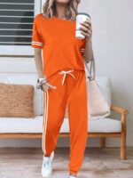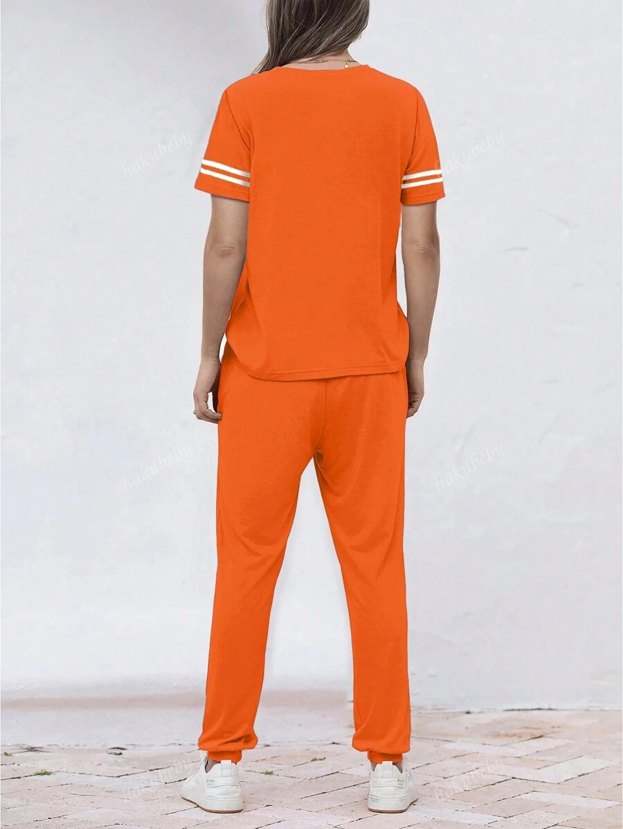 بدلة بنطال ضيق تي شيرت بأكمام قصيرة